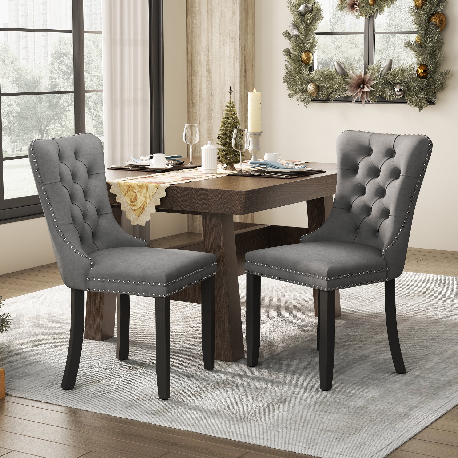 PORKISS Dining Chairs Set of 2, Upholstered High-End Tufted Dining Room Chair with Back Ring and Nailhead Trim, Modern Velvet Chairs with Solid Wood Legs for Kitchen