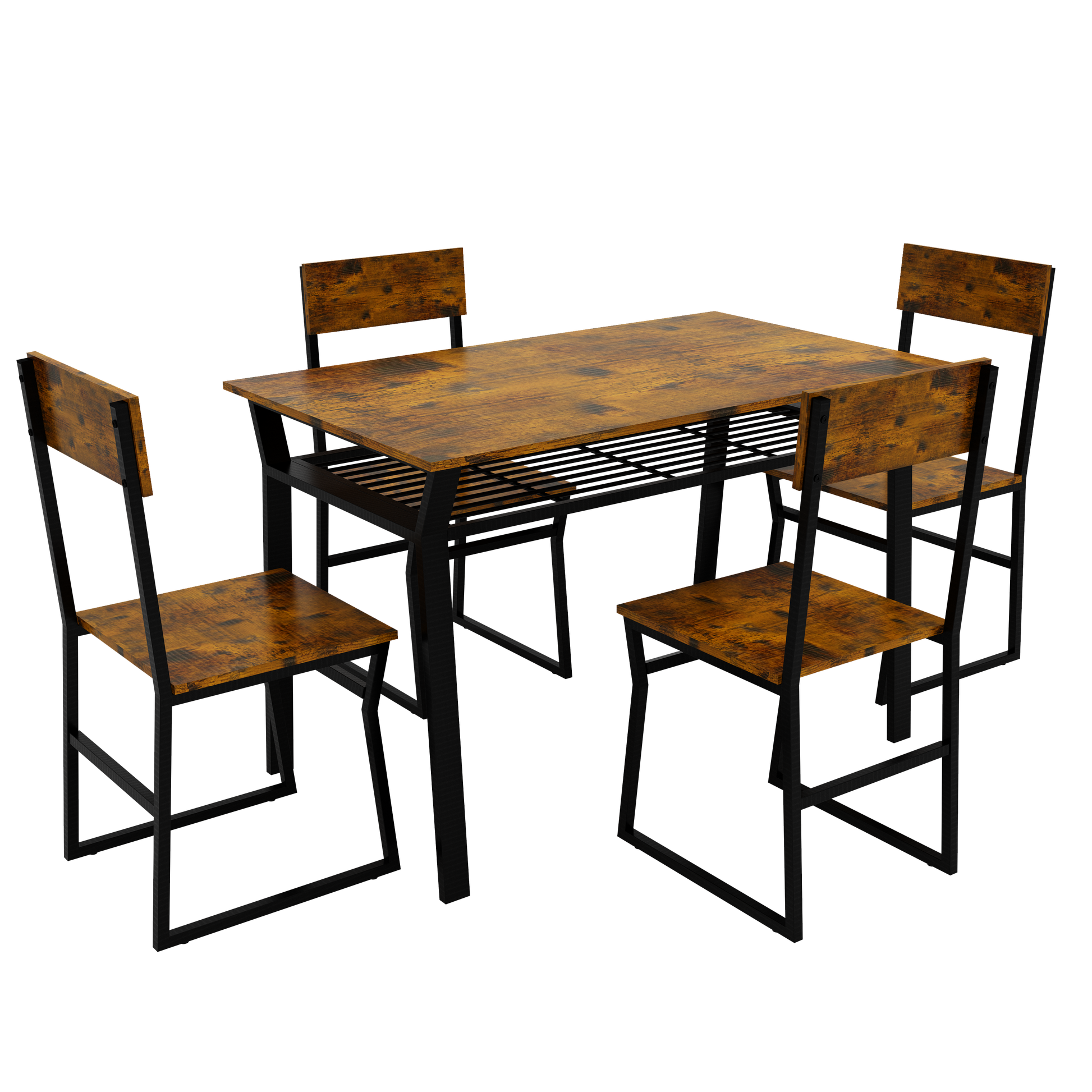 PORKISS Dining Table Set for 4, Modern 5-piece Wood Metal Kitchen Table Set, Heavy Duty Dinette Sets for Breakfast Nook, Dining Room Table and Chairs