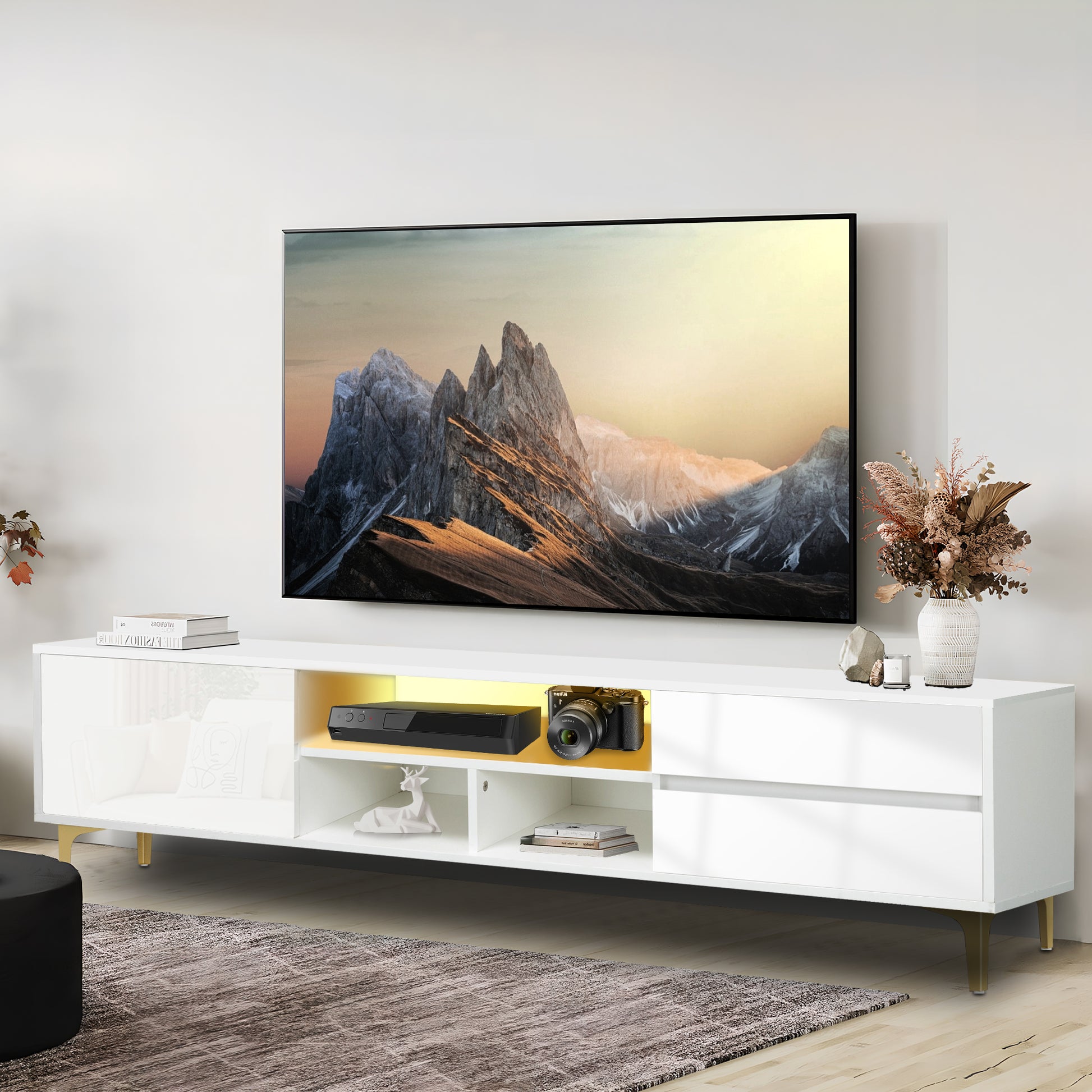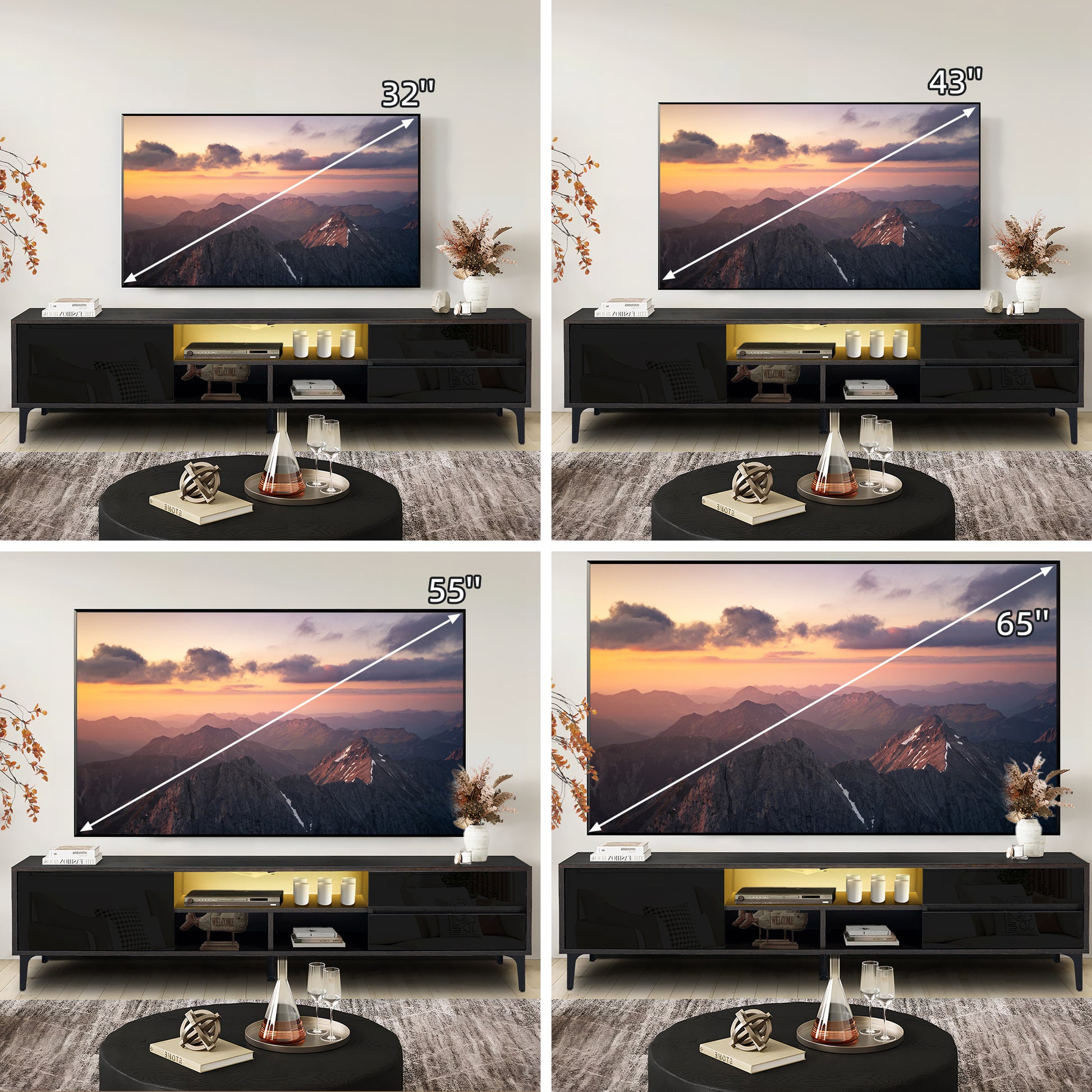 - Versatile LED Lights - The TV stand comes with an LED light belt that offers 16 different colors, 4 light modes, and adjustable brightness, controlled easily with a remote, making your viewing experience more enjoyable.