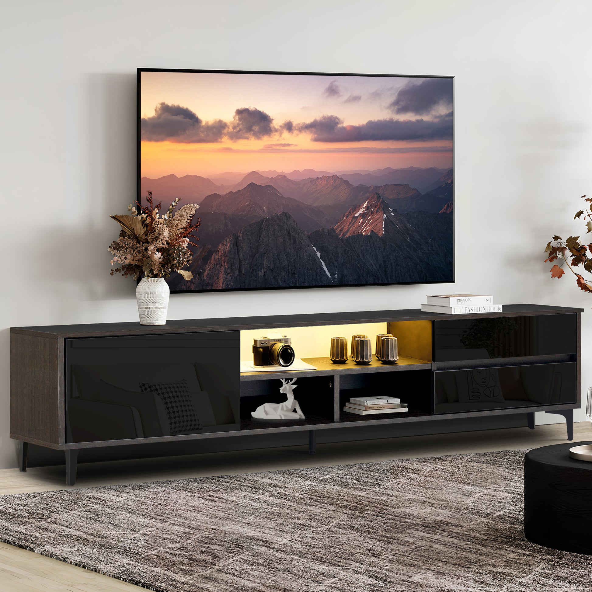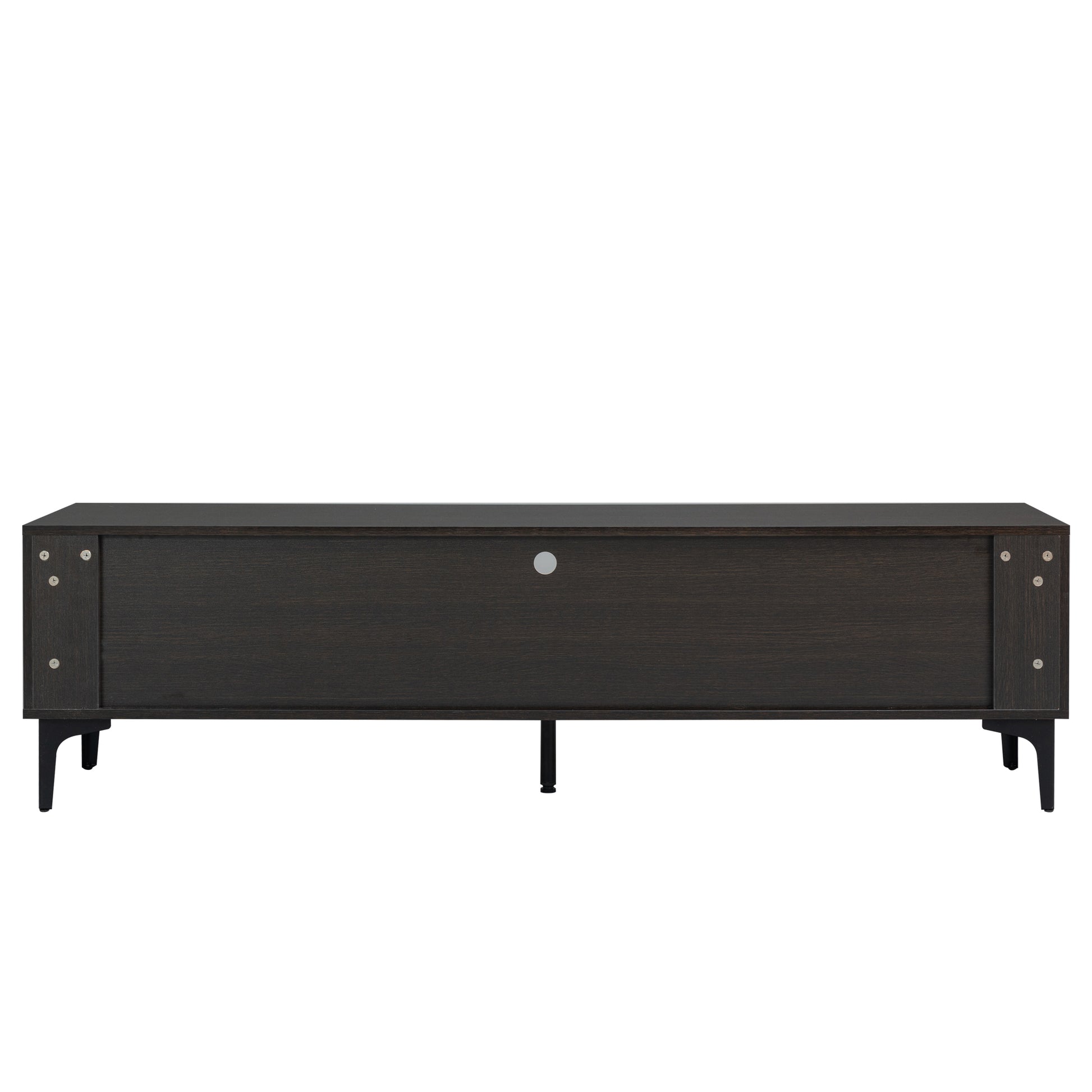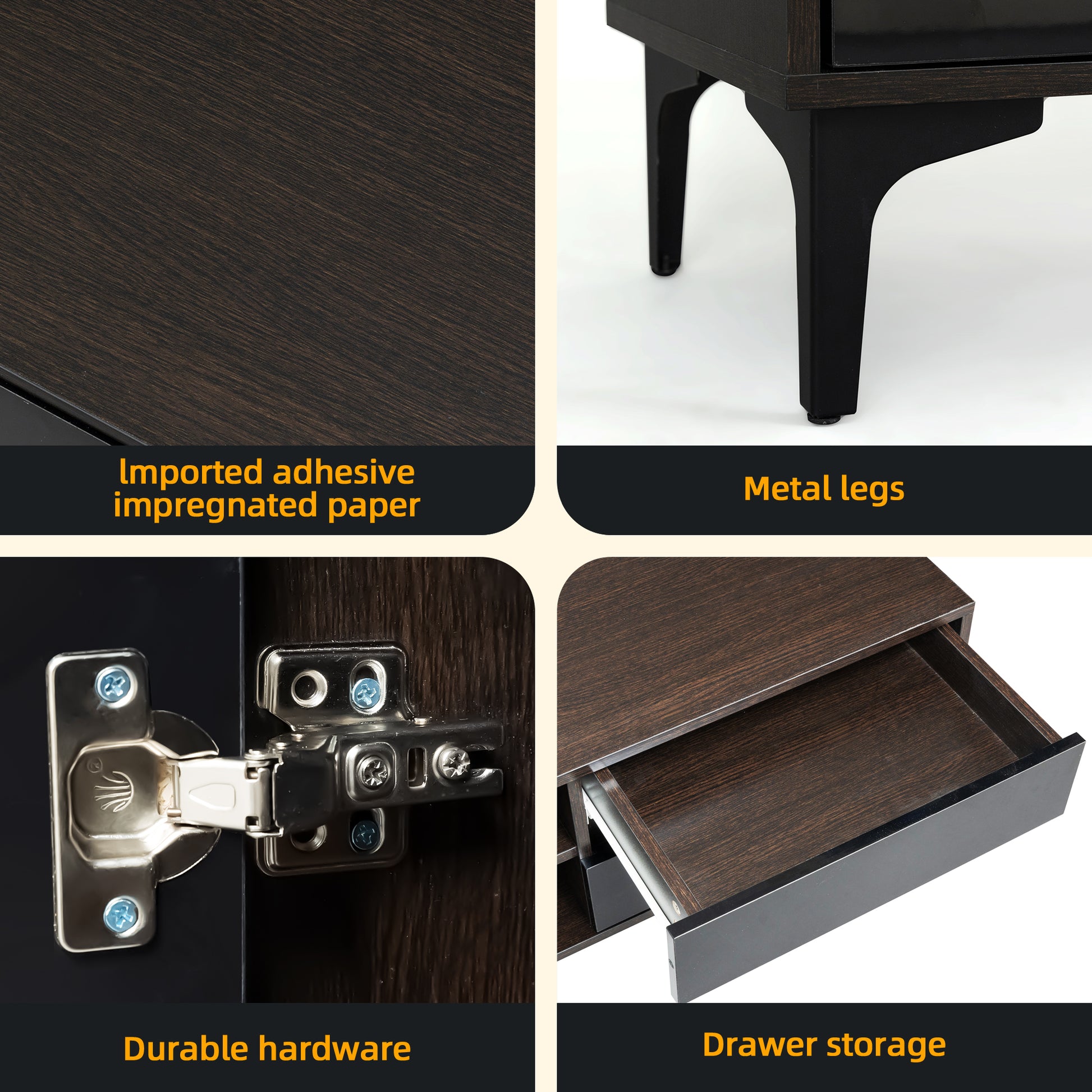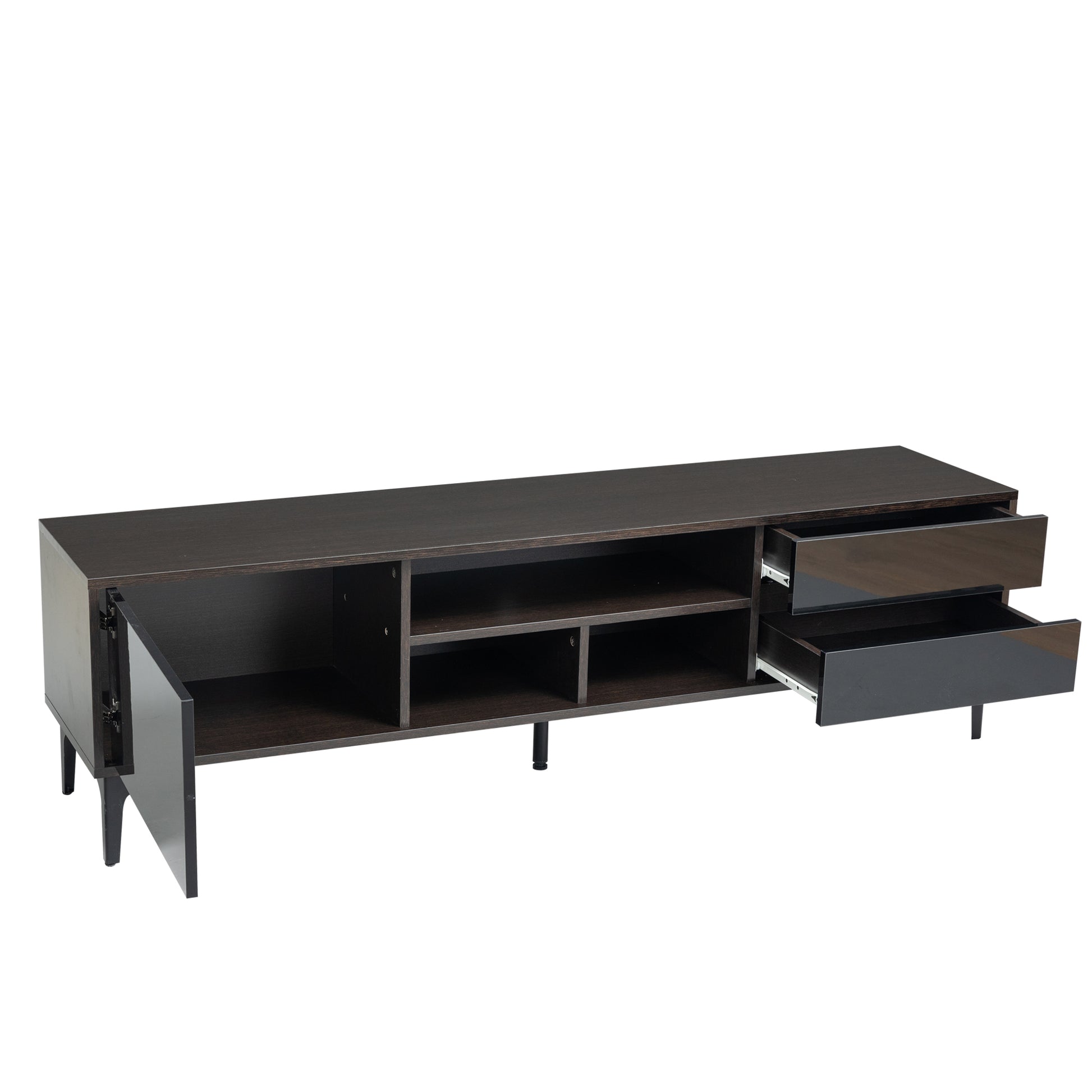 - Organized Storage - The TV stand features two drawers, providing ample and orderly storage for your items. The drawer panel boasts a sleek black UV surface while the rest of the cabinet has a matte dark brown finish with solid wood grain.